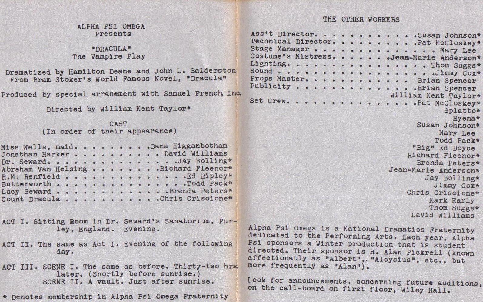 - Dracula - Director… this was a student production under the auspices of Emory & Henry